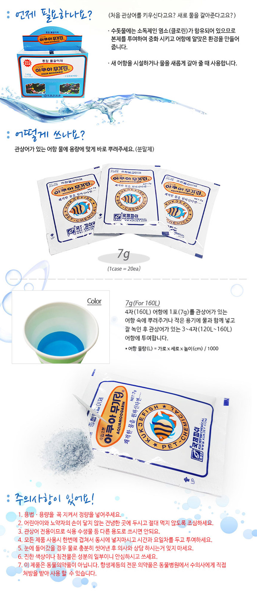 아쿠아무가린 7g 1개 종합물갈이제 310원 / 배송비 : 3,000원 주문시결제(선결제)