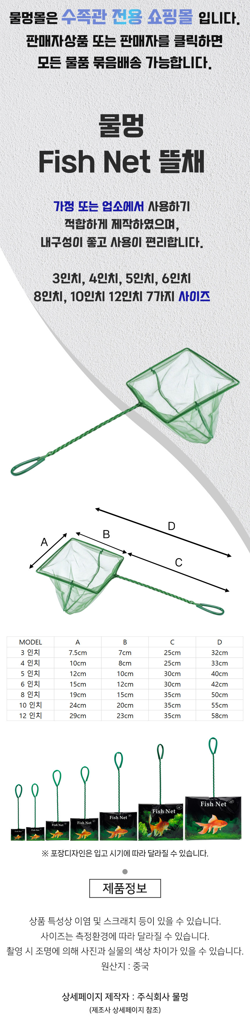Fish Net 뜰채 6인치 1,290원 / 배송비 : 3,000원 주문시결제(선결제)